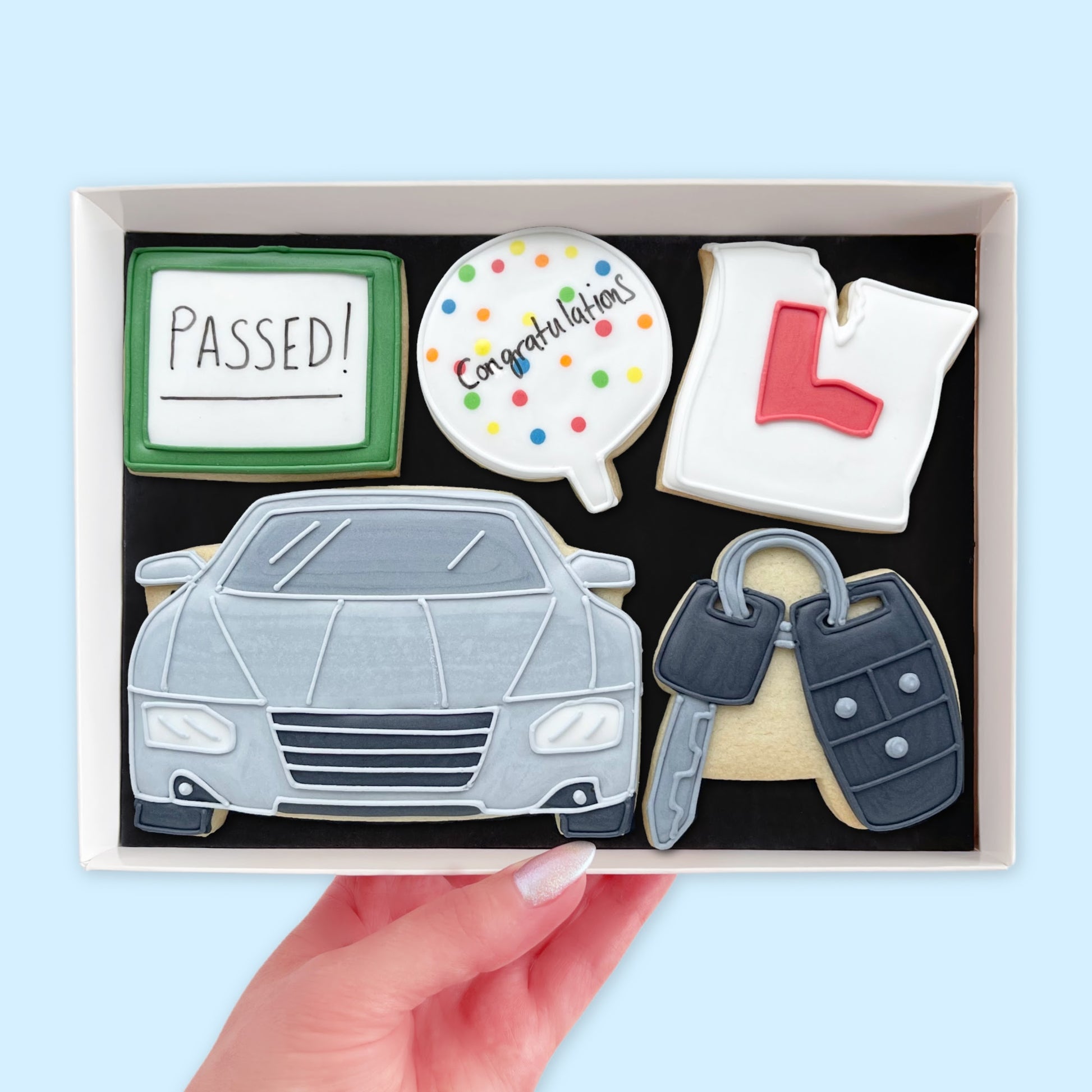 Congratulate a new driver with our Hand-Iced Vanilla "Passed Your Driving Test" Biscuits—a fun and delicious way to celebrate their achievement! Presented in a white gift box with black ribbon, a perfect sweet treat to mark the special occasion.